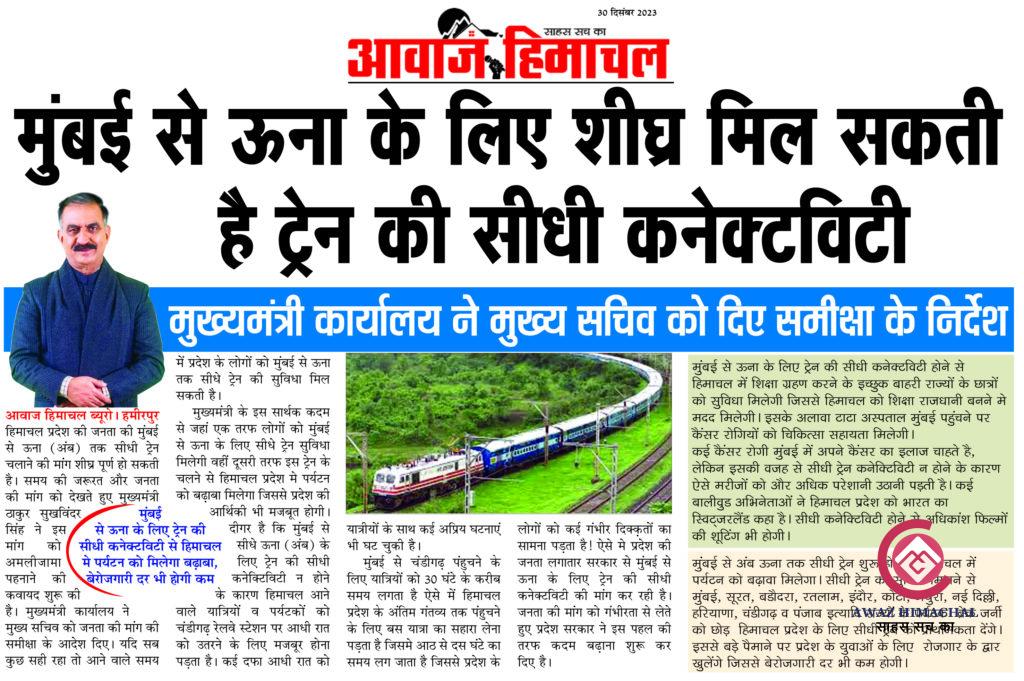 गूंज उठी भारत के संसद में मुंबई-ऊना ट्रेन की सीधी मांग
