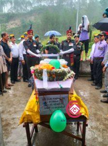 सेना के जवानों ने सैन्य सम्मान के साथ अपने साथी को दी विदाई, बेटे आयुष ने पिता को दी मुख्यगनी
