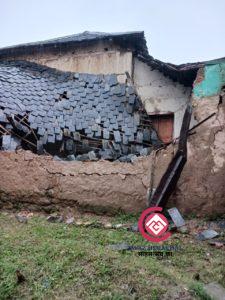 उपमंडल भर में लगातार हो रही मूसलाधार बरसात के कारण संतोष कुमार गांव अंसरा डाकघर किटपल तहसील गलोड़ का स्लेटपोश दो मंजिला कच्चा मकान भारी बारिश के कारण गिर गया है। गनीमत यह रही कि इससे किसी को कोई नुकसान नहीं हुआ। वहीं घर के अंदर रखा सारा सामान क्षतिग्रस्त हो गया है।