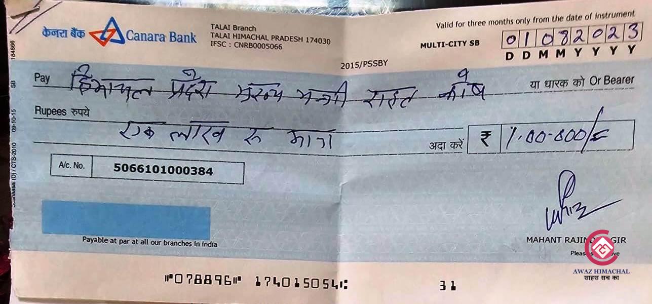 महंत श्री ने अपनी ओर से एक लाख रुपया डाक के माध्यम से मुख्यमंत्री राहत कोष में एक लाख रुपए का चेक भेजने के बाद देश-विदेश में बैठे संपन्न नागरिकों से आग्रह किया है कि मुख्यमंत्री राहत कोष आपदा पीडितों को मदद करने का एक मात्र असली जरिया है। इसलिए आपदा पीडितों के लिए यथाशक्ति व यथासंभव मुख्यमंत्री राहत कोष में दी जाए। उन्होंने कहा कि आपदा प्रभावित क्षेत्रों में मुख्यमंत्री सुखविंद्र सिंह सुक्खू काफी बेहतर प्रयास कर रहे हैं। जिसके लिए वह बधाई के पात्र हैं।