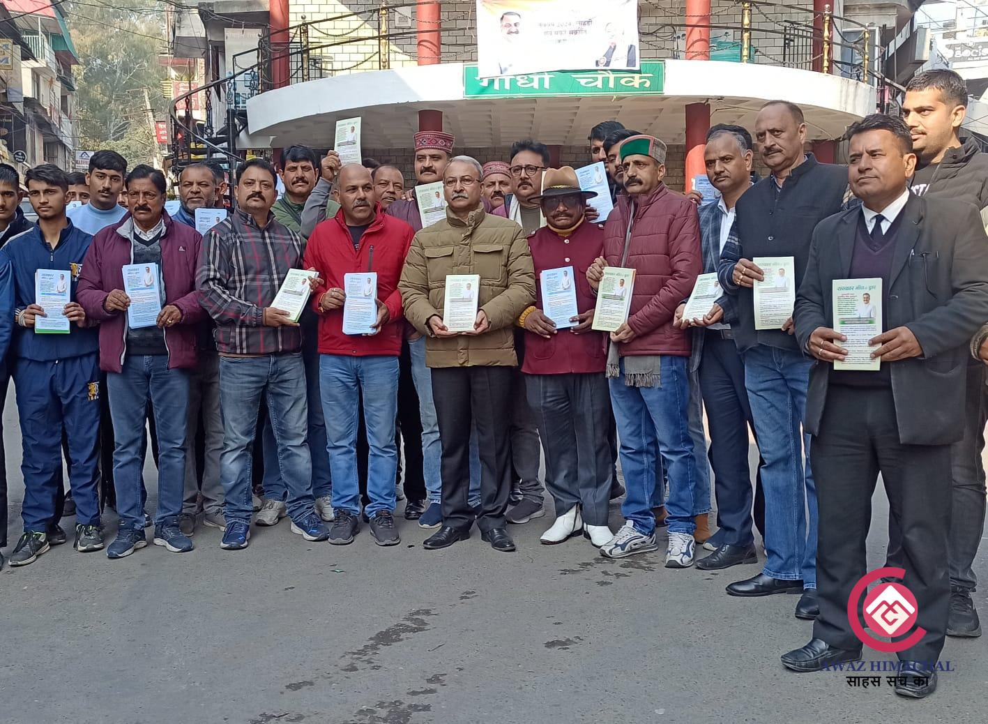 हमीरपुर बाजार में बांटी प्रदेश सरकार की एक वर्ष की उपलब्धियों की प्रचार सामग्री