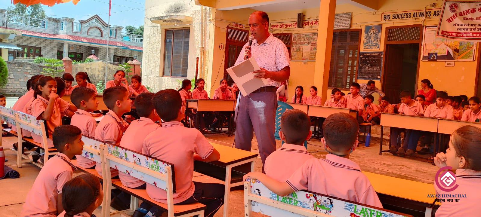 वरिष्ठ शिक्षक करतार ठाकुर ने प्रतियोगिता में बच्चों से पूछे सवाल आवाज़ हिमाचल! बड़सर बाबा बालक नाथ मॉडल स्कूल चकमोह में सामान्य ज्ञान प्रतियोगिता का