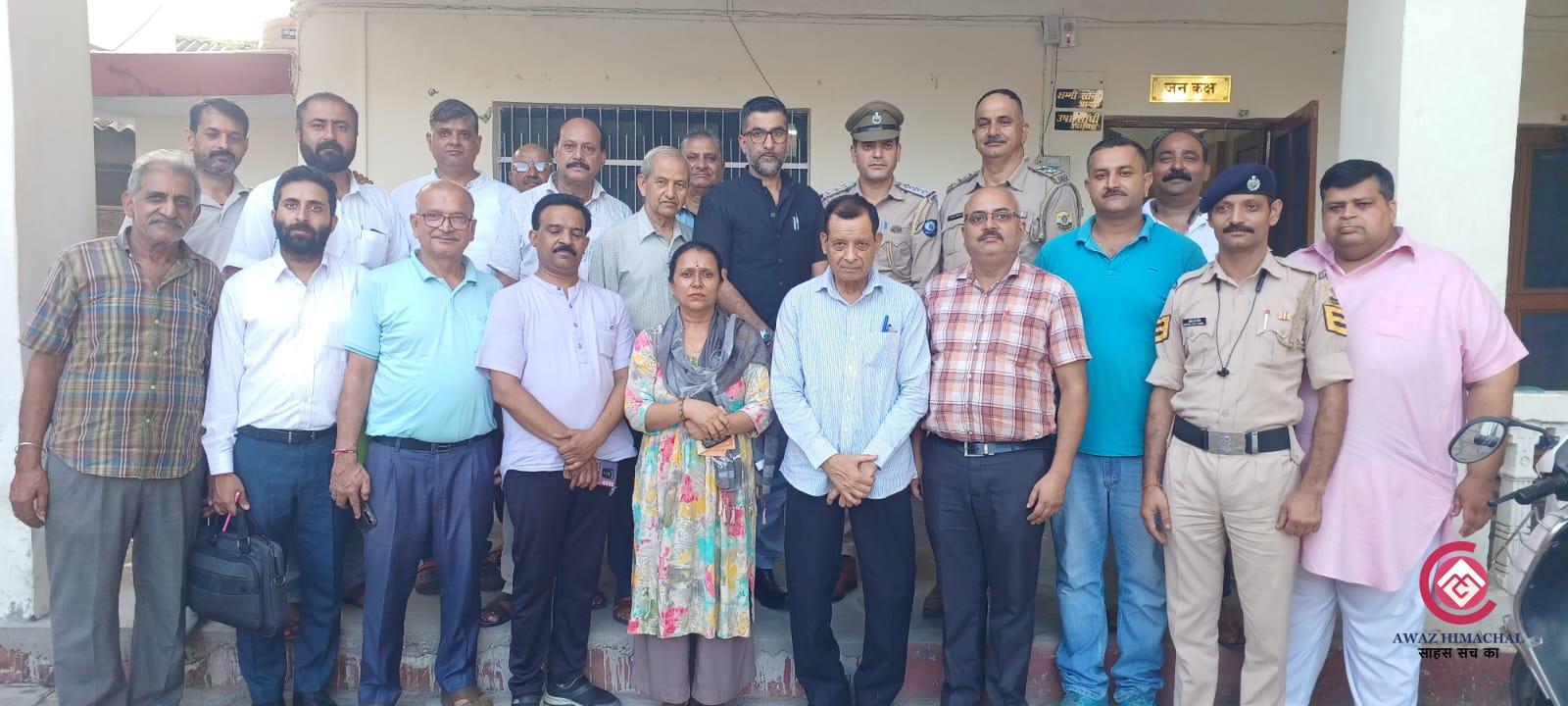 आवाज हिमाचल।नादौन नादौन शहर की सुरक्षा तथा बढ़ रही प्रवासियों की संख्या को लेकर व्यापार मंडल के अनुरोध पर पुलिस विभाग तथा नगर पंचायत सहित